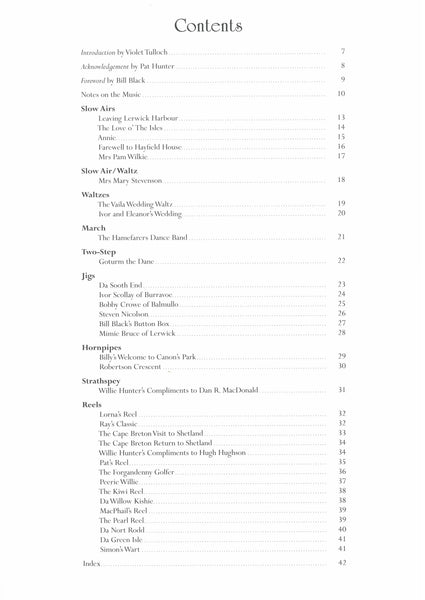 This is a new and expanded collection of the compositions of Willie Hunter, in succession to an earlier publication of 1998. It includes three more tunes by Willie and three by his father, Willie Hunter Senior, making 34 tunes in all. The trustees of Shetland Musical Heritage Trust are pleased to be able to publish in what would have been Willie’s 80th year, in tribute to a man generally regarded as Shetland’s finest fiddle player of the 20th century.